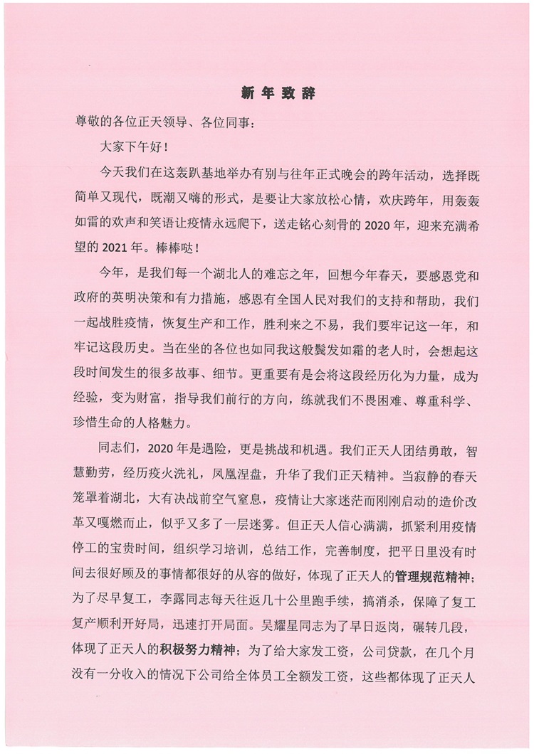 2021年新年致辞