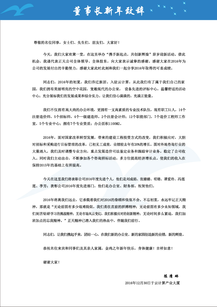 董事长致辞