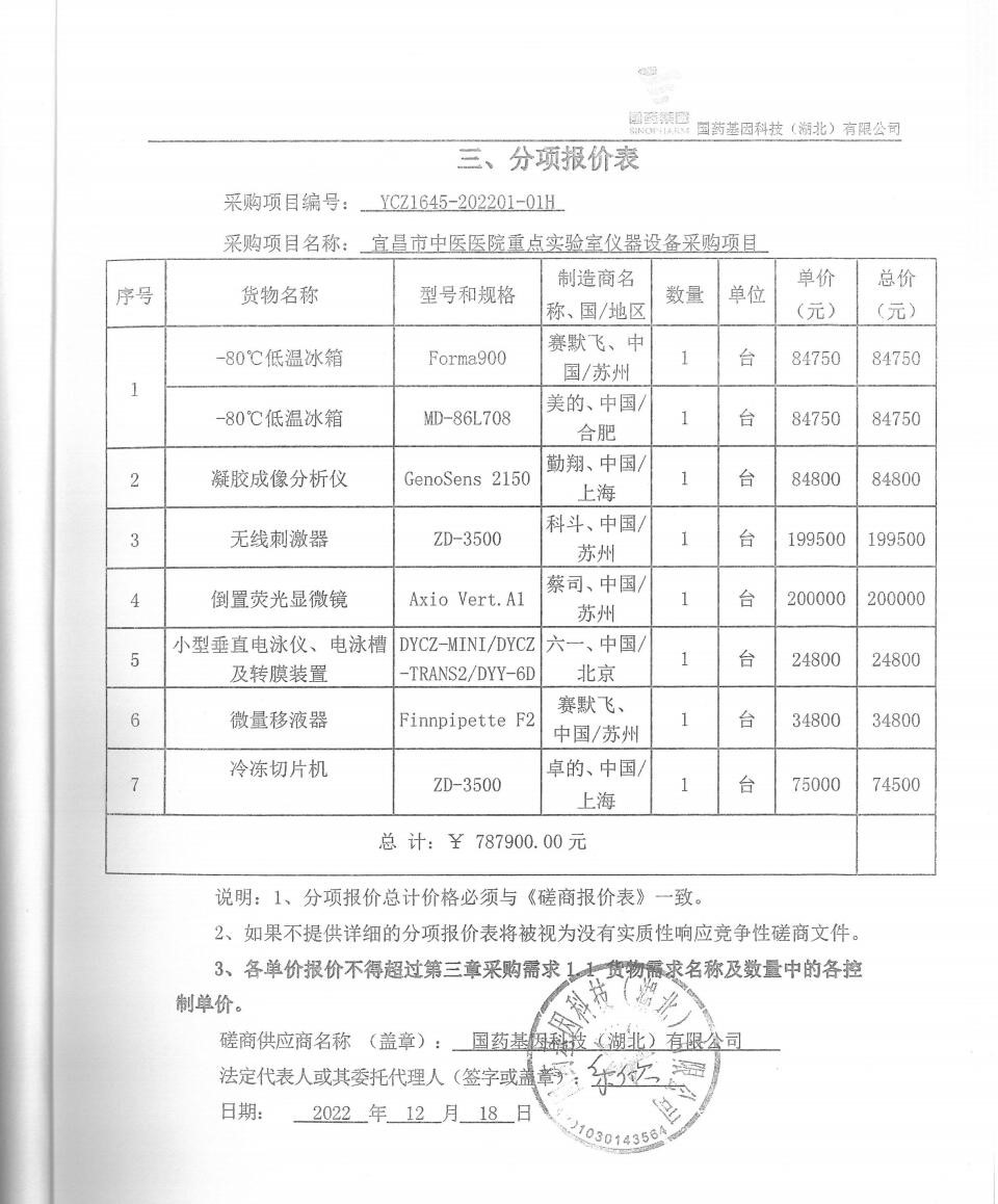 三、项目名称:宜昌市中医医院重点实验室仪器设备采购项目