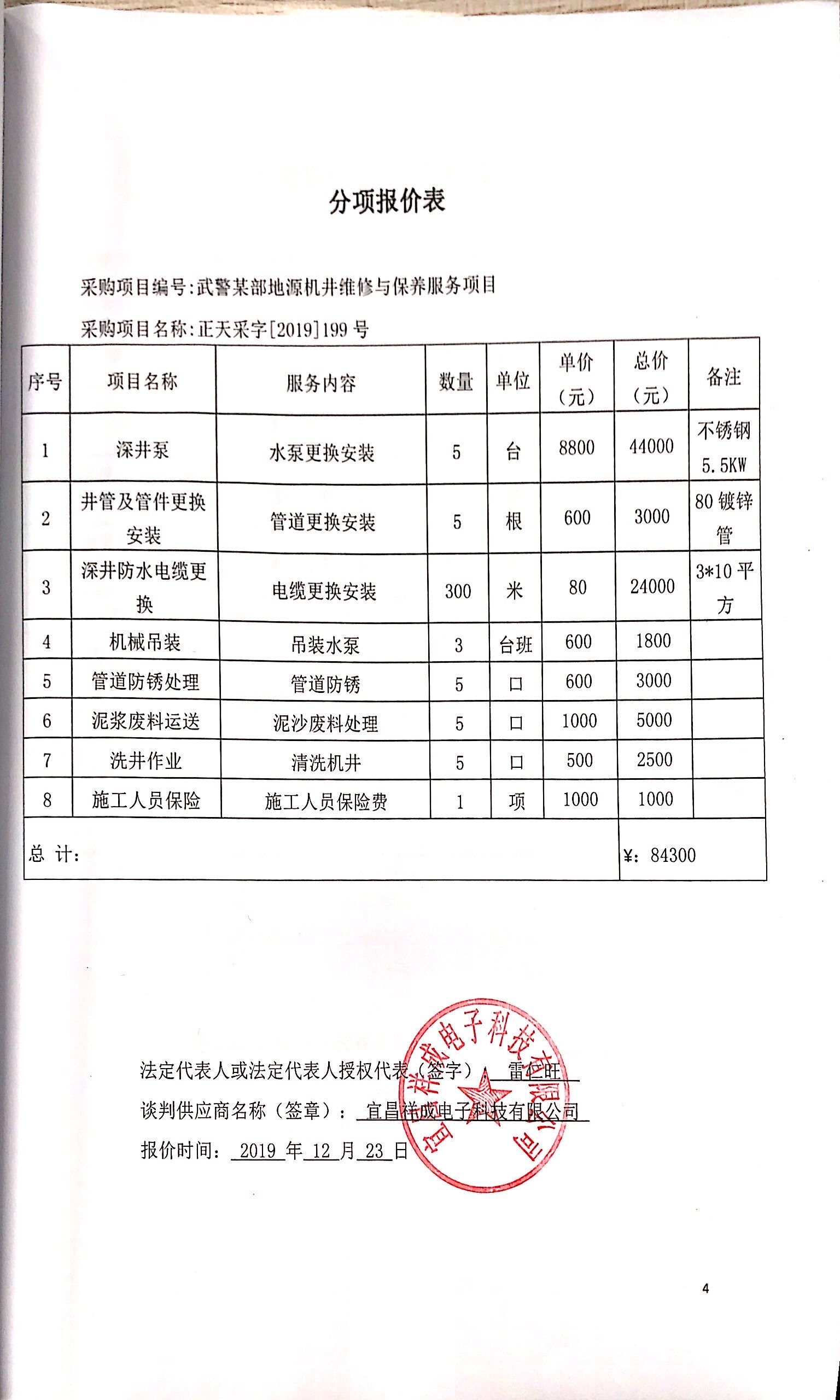 根据相关文件要求,博鱼买球受武警某部的委托,于2019年12月24日就武警某部地源机井维修保养服务项目(第二次采购)进行竞争性谈判采购,按规定程序进行了谈判。现就本次采购的成交结果公告如下: