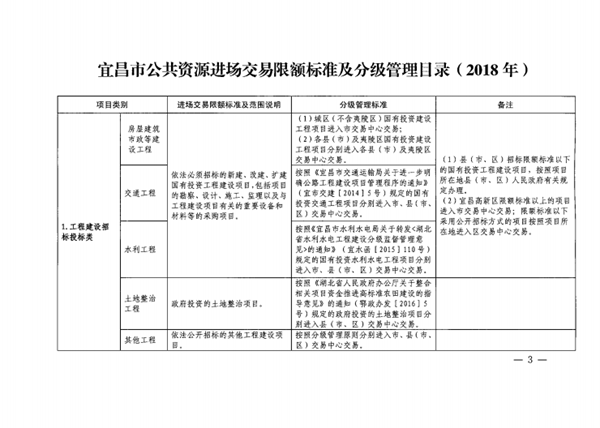 市人民政府办公室关于印发宜昌市公共资源进场交易限额标准及分级管理目录(2018年)的通知